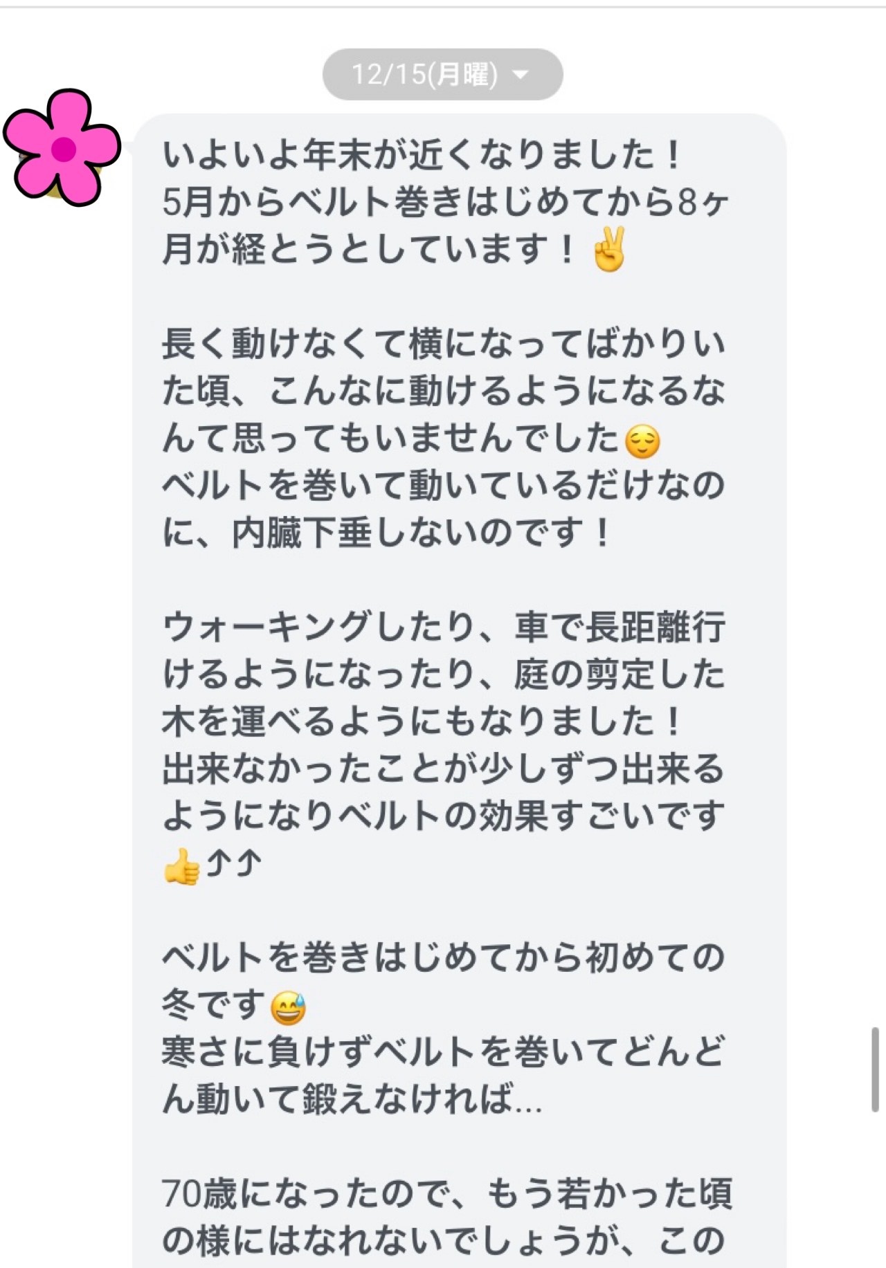 下半身美人ベルトを巻き始めて【8ヶ月】経過のお客様よりうれしいお便りが届いています♪E・K 様 70歳